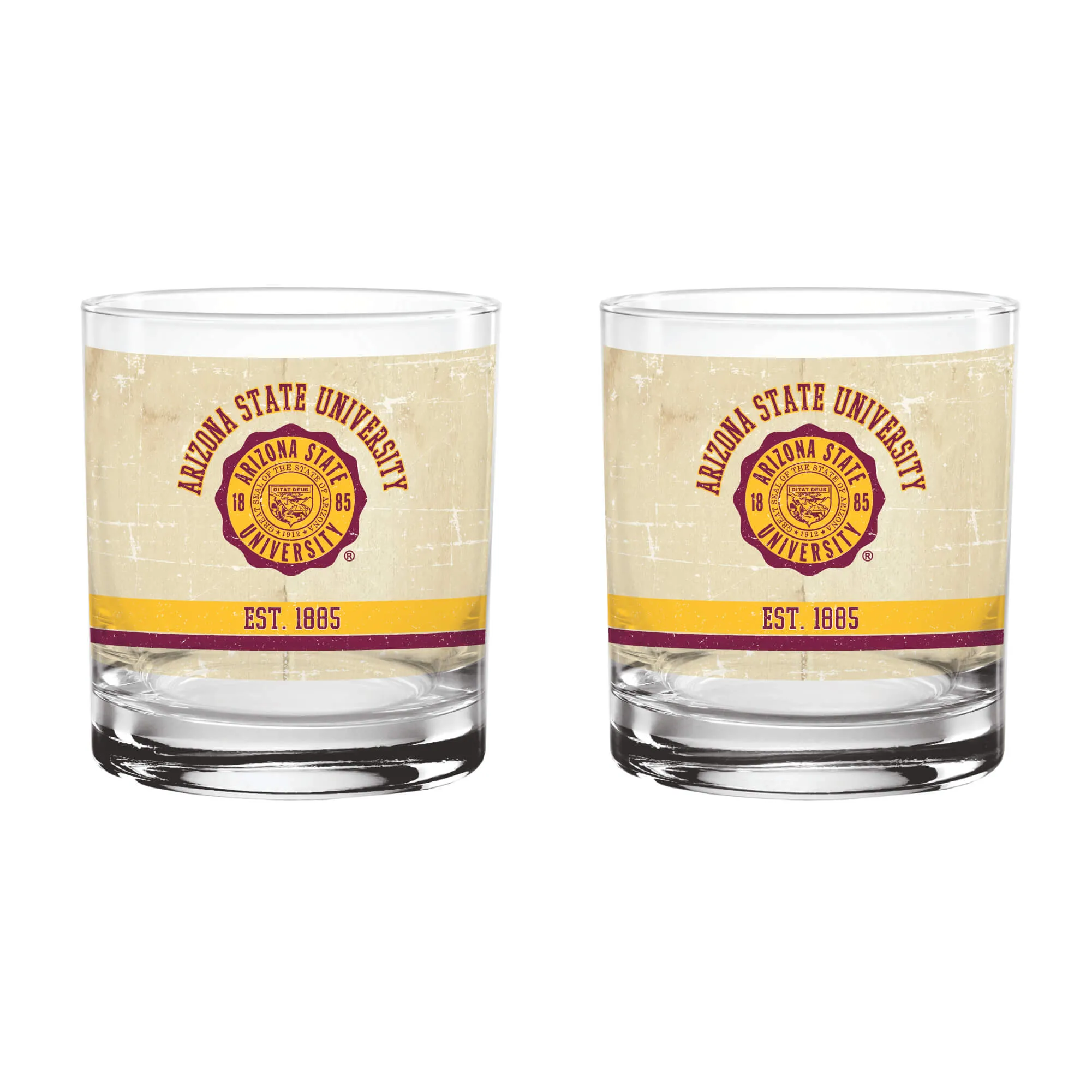 Arizona State Sun Devils Set of 2 College Vault Tan Retro 14oz Rocks Glasses