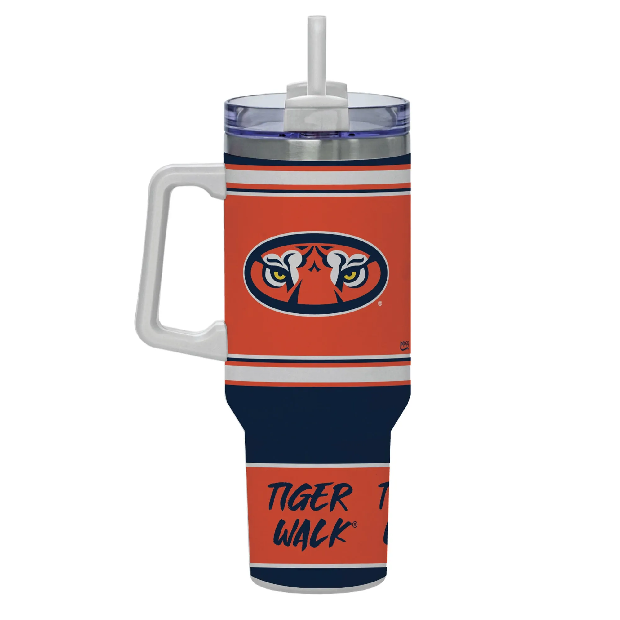 With this incredible tumbler, proudly show off your love for the Auburn Tigers. It features a full wrap of graphics from top to bottom, a sizable handle, a lid perfect for sipping or straws, and double wall vacuum insulation to keep your favorite drinks hot or cold for hours on end! Plus, it even comes with a straw included in the box!