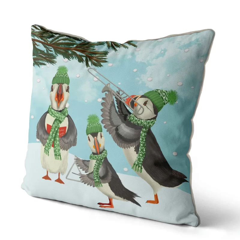 Puffin Christmas Band, Cushion / Throw Pillow