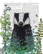 Cottage garden print of a badger.