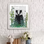 Badger In The Garden, Book Print, Art Print, Wall Art