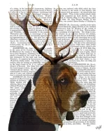 Basset Hound and Antlers, Book Print, Dog Art Print, Wall Art