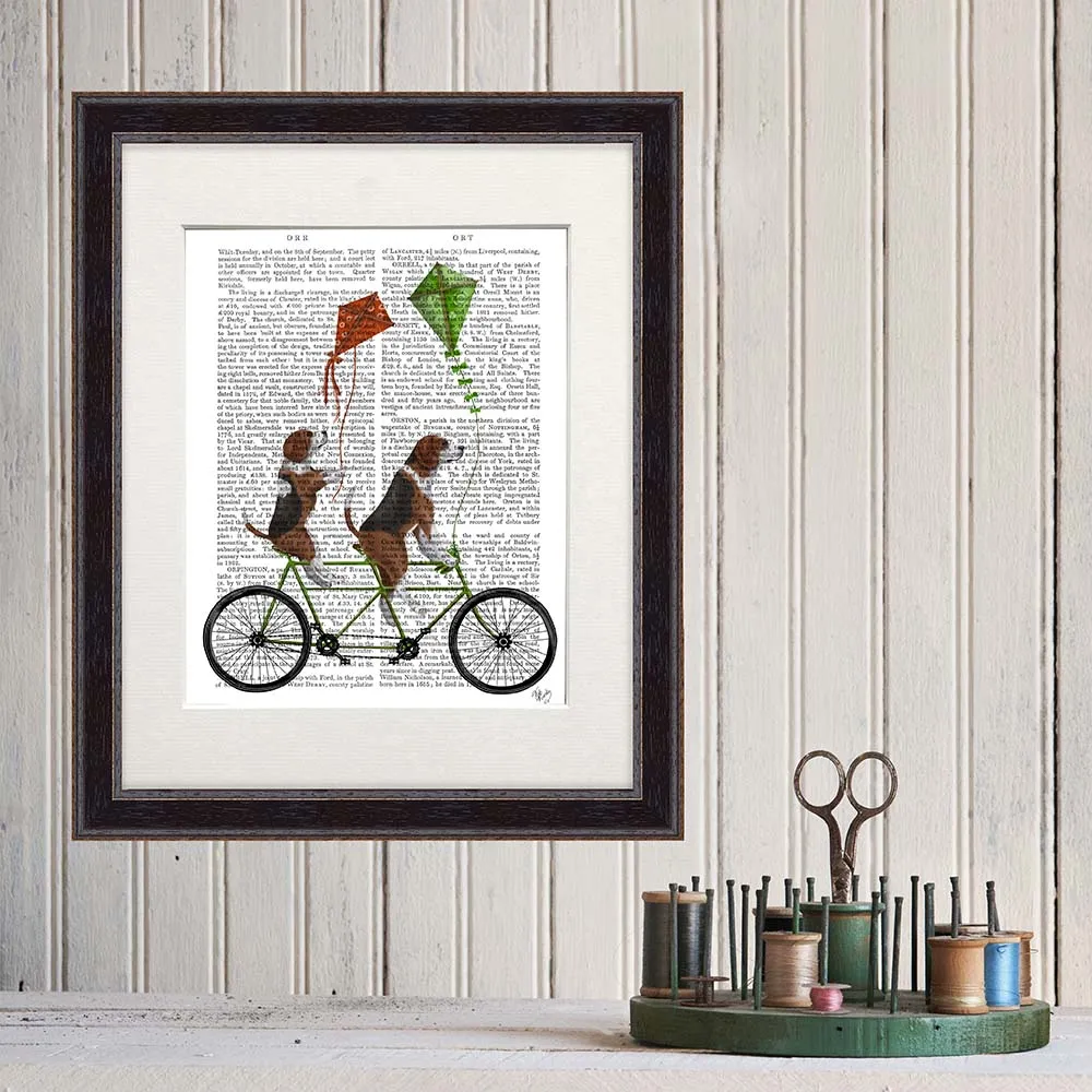 Beagle Tandem, Book Print, Dog Art Print, Wall Art