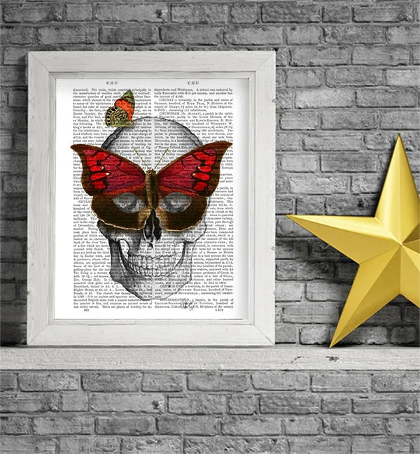 Pink Butterfly Mask Skull, Book Print, Art Print, Wall Art