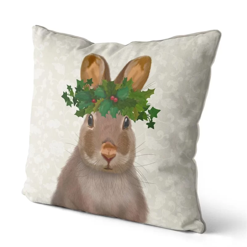 Rabbit and Holly Crown, Cushion / Throw Pillow