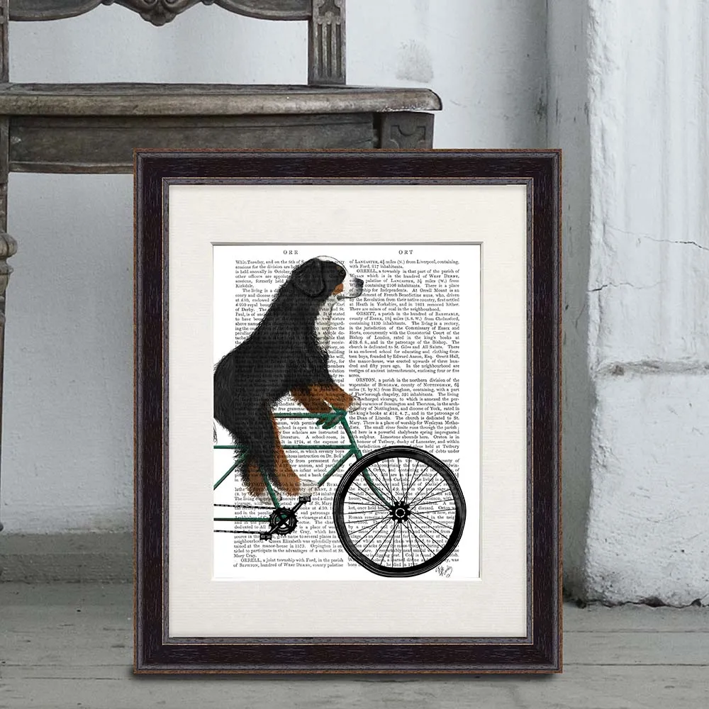 Bernese Mountain Dog On Bicycle, Book Print, Dog Art Print, Wall Art
