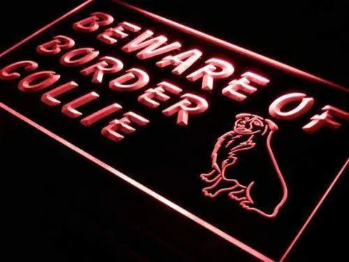 Beware of Border Collie LED Light Sign