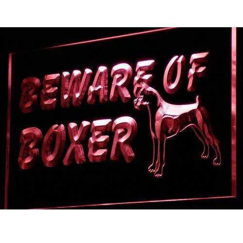 This Beware of Boxer Dog LED Sign is designed using a unique 3D engraving method. These single color signs are ideal for displaying one color at a time, while the multicolor option of these single color signs allow one to switch between colors and also operate different lighting effect modes. Ideal for businesses and home decor, these LED signs are sure to light up your world!