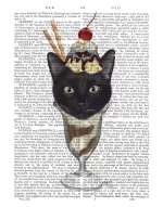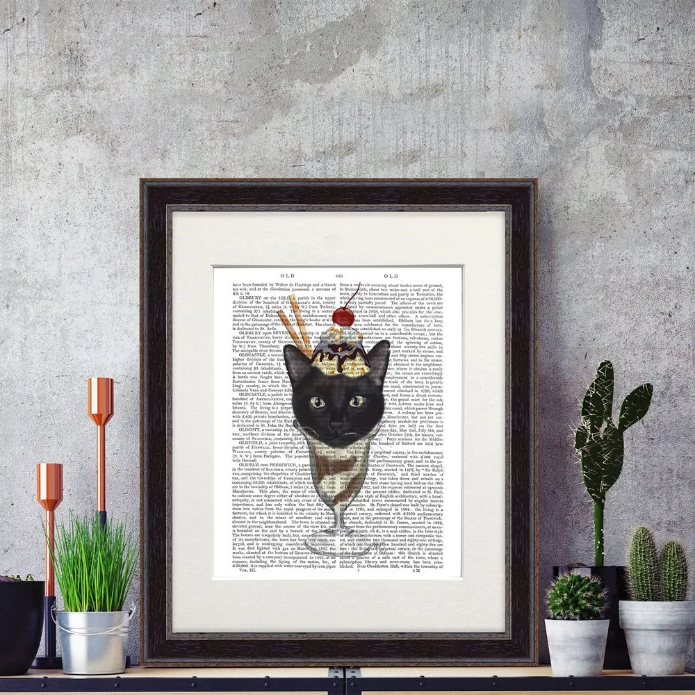 Black Cat Ice Cream Sundae, Book Print, Art Print, Wall Art