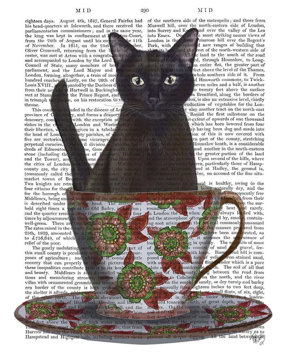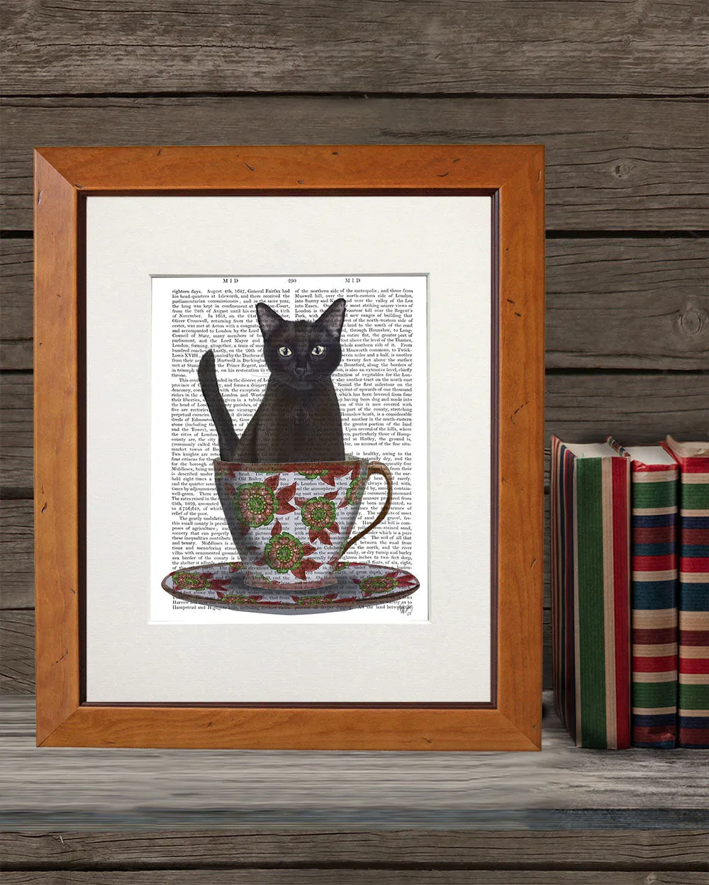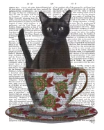 Black Cat in Teacup, Book Print, Art Print, Wall Art