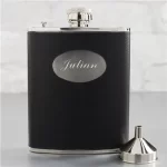 Black Leatherette Flask – Custom Engraved Groomsmen Gift