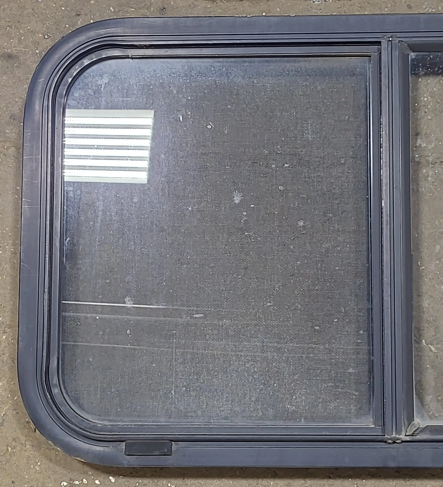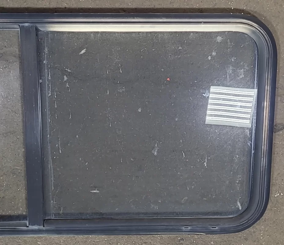 NOTES: Good used shape! This window is the type that gets “sandwiched” between the outer frame and inner frame, being screwed on from the inside. Screen included, in good shape. Seals in good shape. Tinted. Inner frame included. All hardware shown is included & in good working condition. See images.