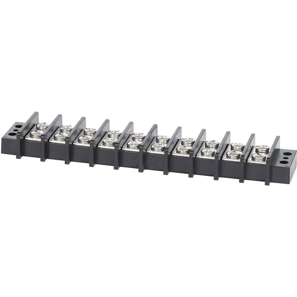 Wire Terminal Block; 10 Circuit; 65 Amps; 600 Volts AC/DC; Screw Terminal; Black; Nickel Plated Brass Bus With Phenolic Base; Closed Back Design