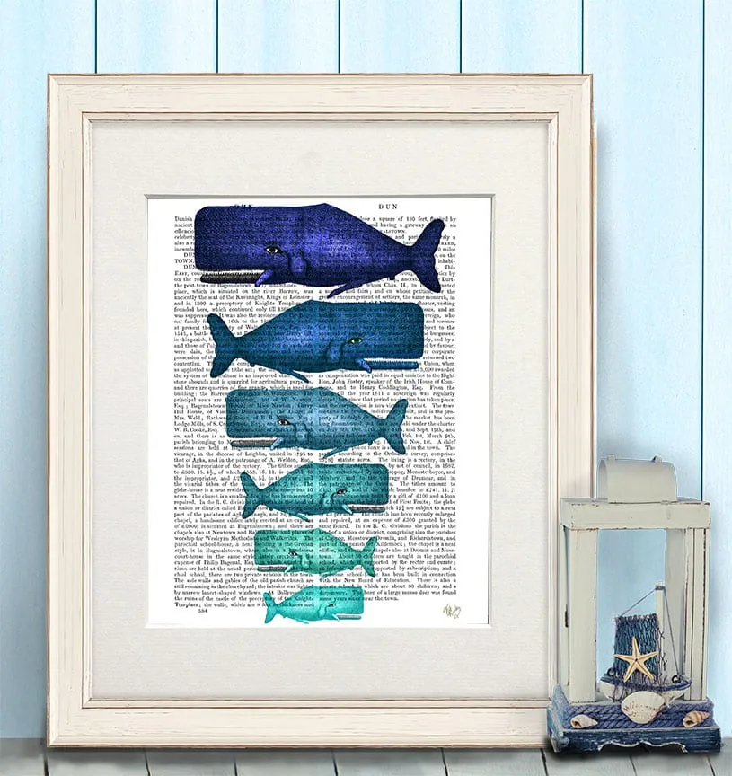 Blue Whale Family, Book Print, Art Print, Wall Art
