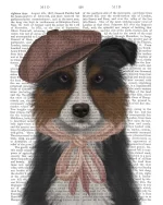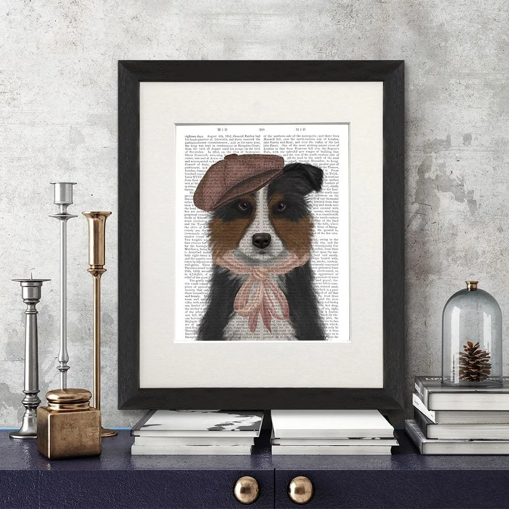 Border Collie Hat and Pink Scarf, Book Print, Dog Art Print, Wall Art