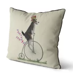 An illustration from our ‘Dogs on Penny Farthings’ Collection, this adorable cushion cover features a very cute dog riding a brightly coloured Victorian Penny Farthing Bicycle. A definite hit with dog lovers.