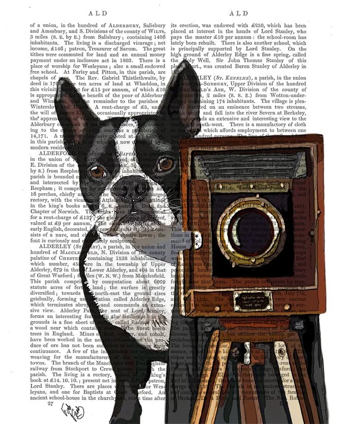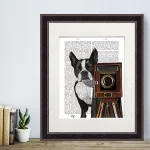 Boston Terrier Photographer Dog Book Print, Art Print, Wall Art