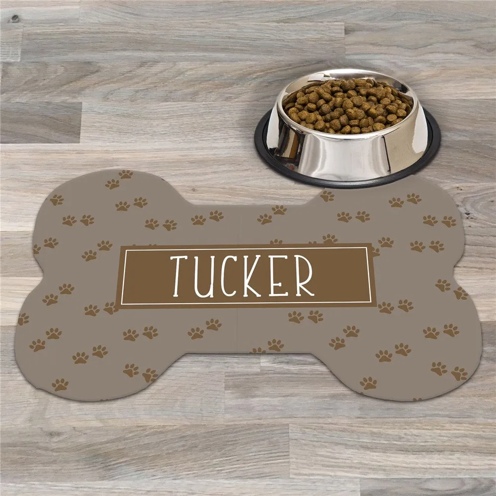 Brown Paws with Name Personalized Dog Bone Rug – Custom Feeding Mat