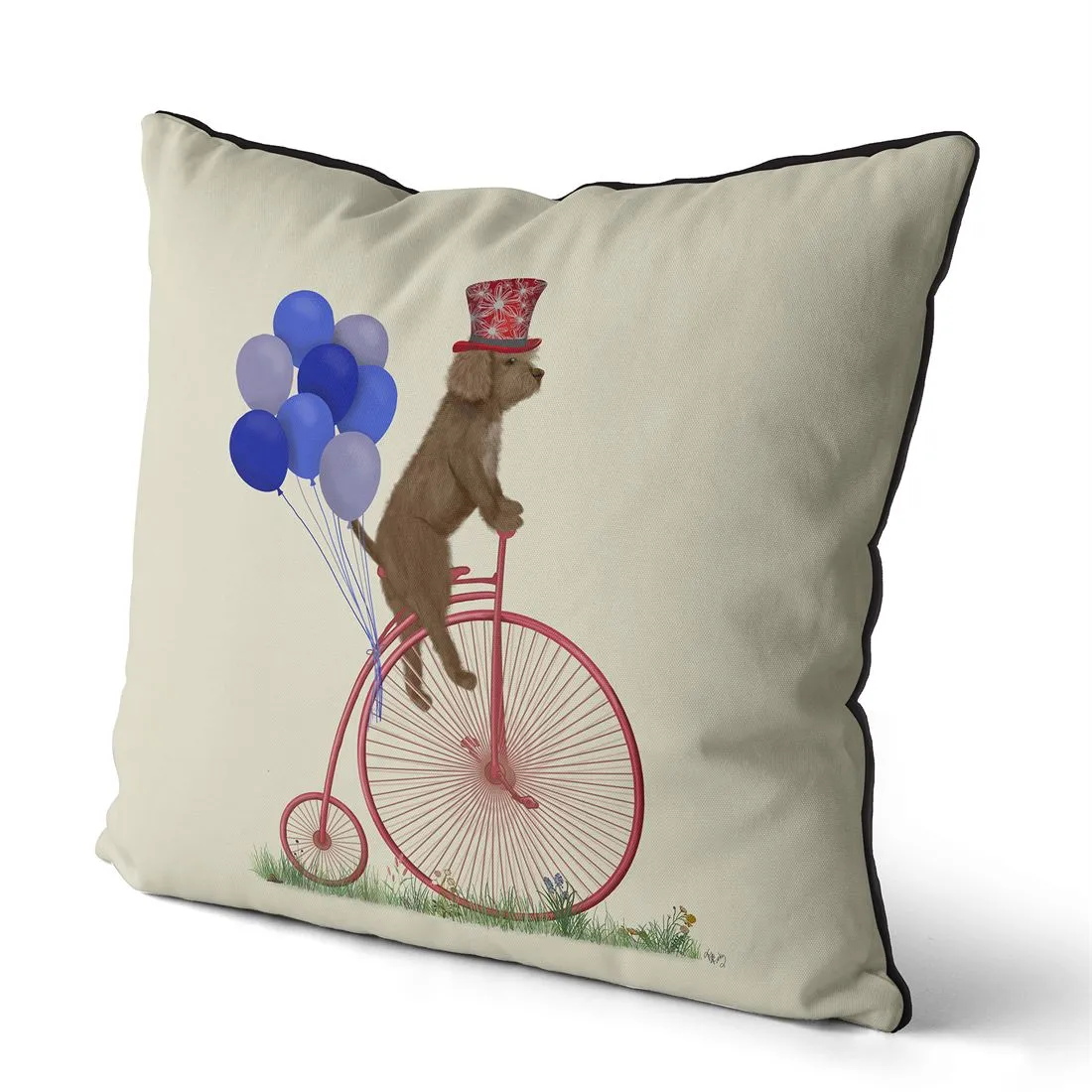 Cockapoo, Cockerpoo Blonde on Penny Farthing, Cushion / Throw Pillow