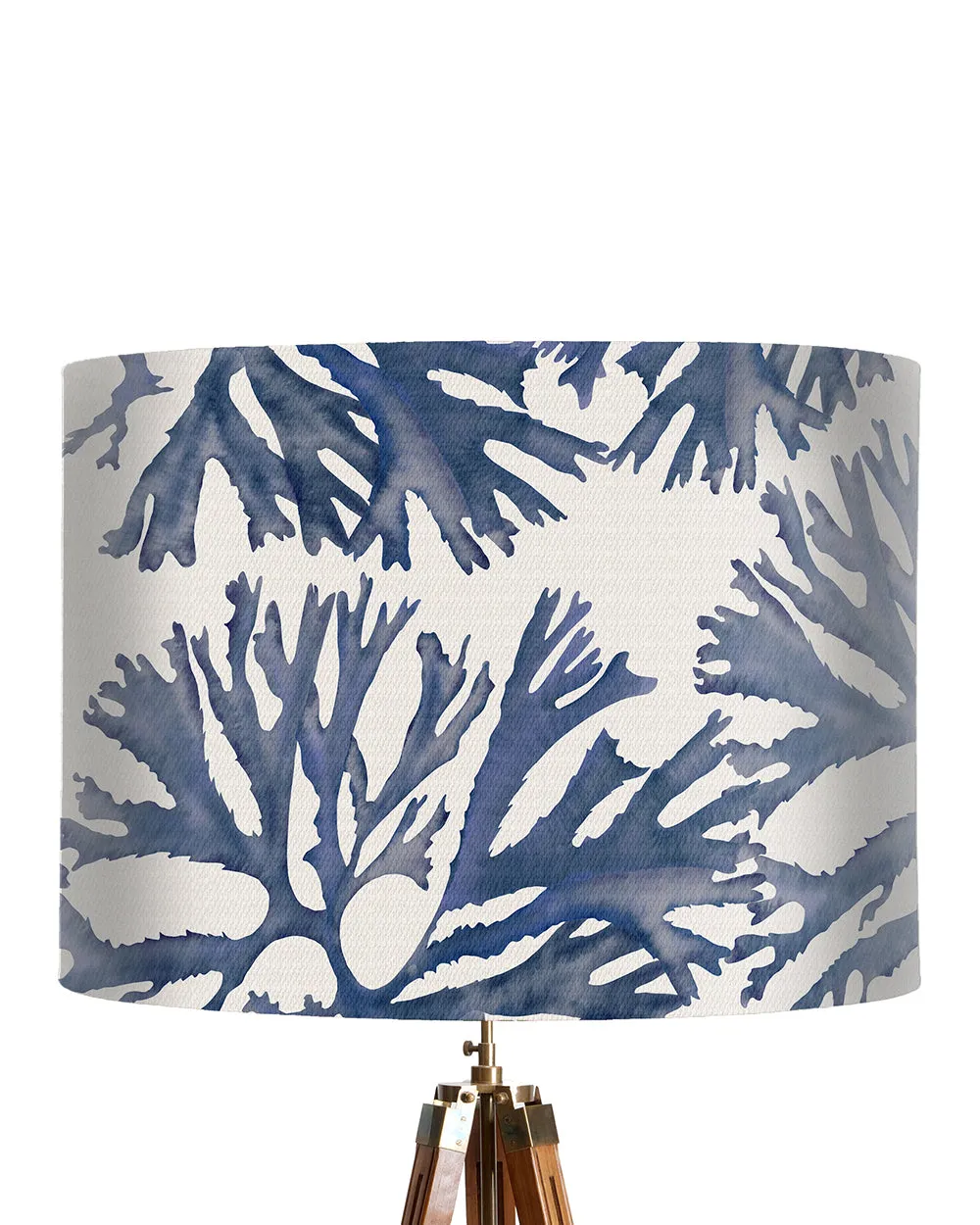 A fabulous contemporary coastal home style lamp shade adorned with our original painting of coral in blue. A must for any modern beach home.