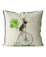 An illustration from our ‘Dogs on Penny Farthings’ Collection, this adorable cushion cover features a very cute dog riding a