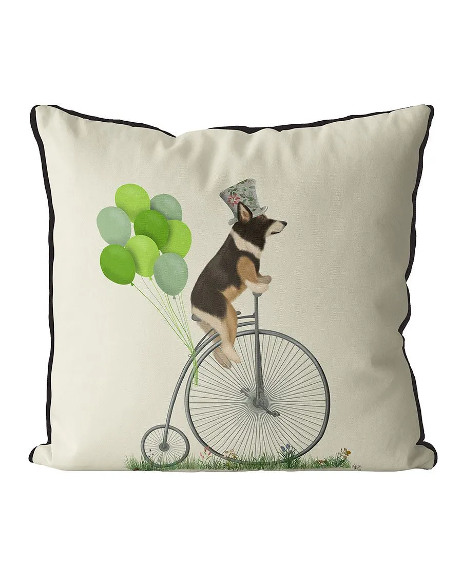 Corgi Tricolour on Penny Farthing, Cushion / Throw Pillow