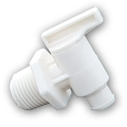Petersen Plastic Drain Cock. Durable plastic with UV stabilizer. Replaces most standard fresh water drain cocks. Bulk. Without flange, Colonial White, 1/2 inch MPT.