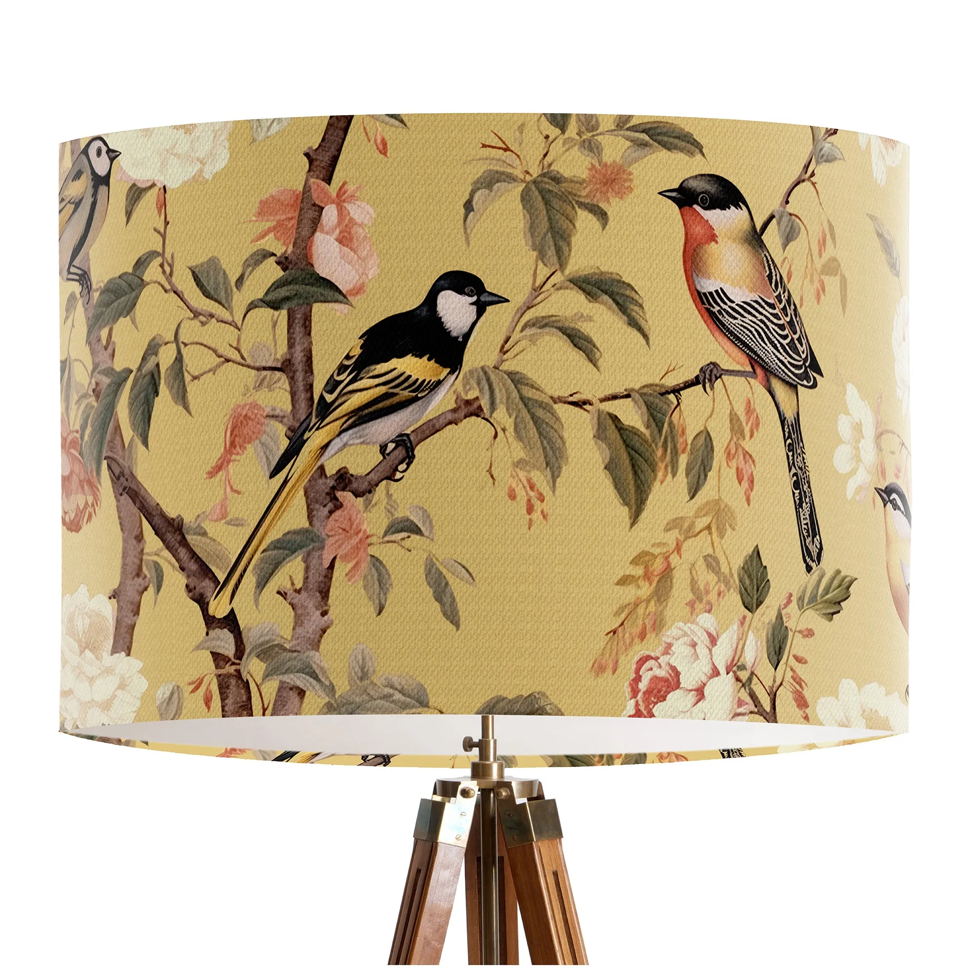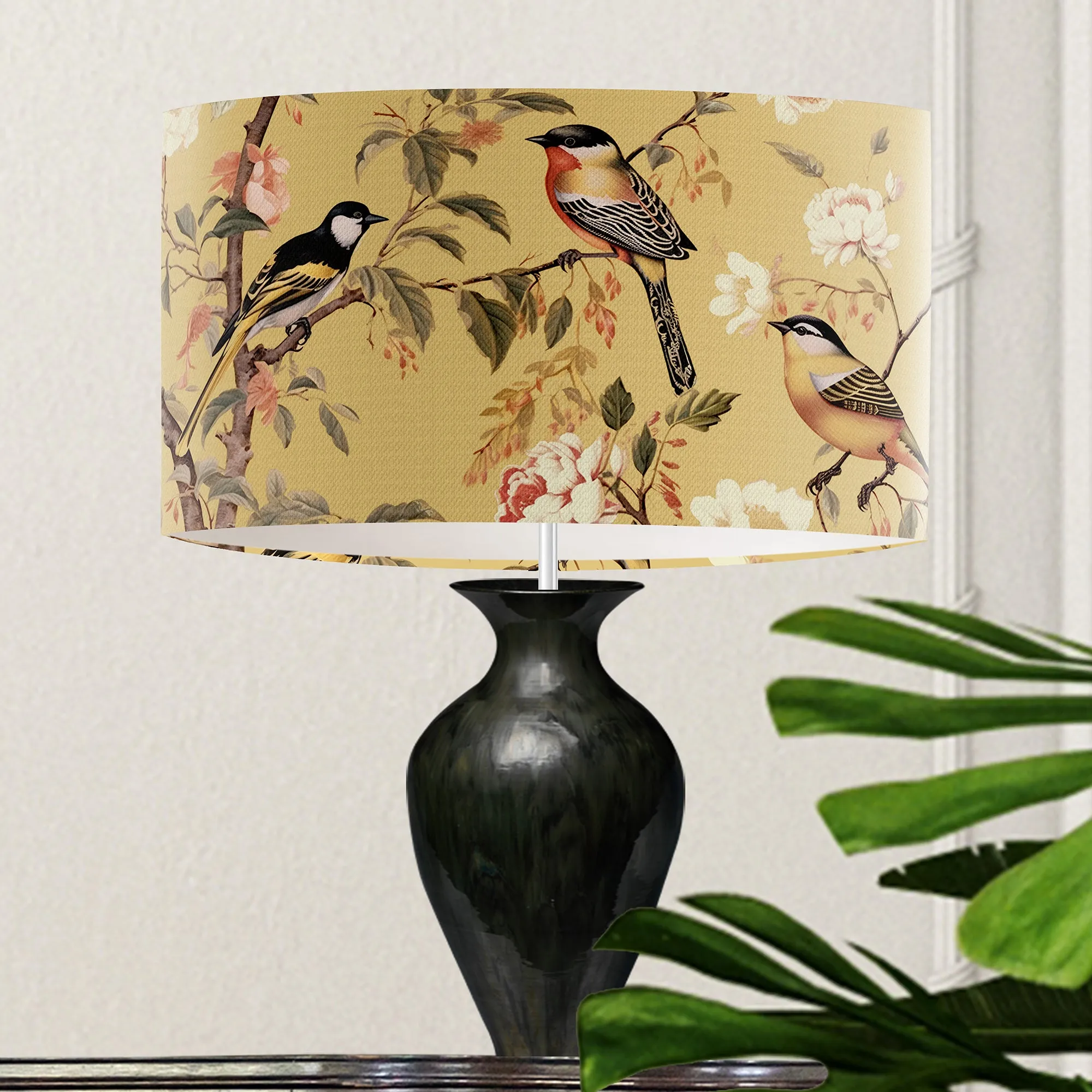 Country Home Lampshade, Garden Birds Yellow, Celing Pendant, Drum Shade