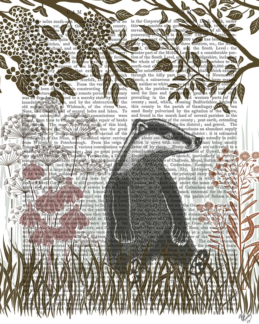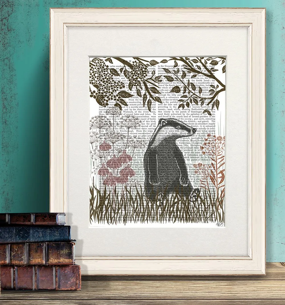 Country Lane Badger 3, Earth, Book Print, Art Print, Wall Art