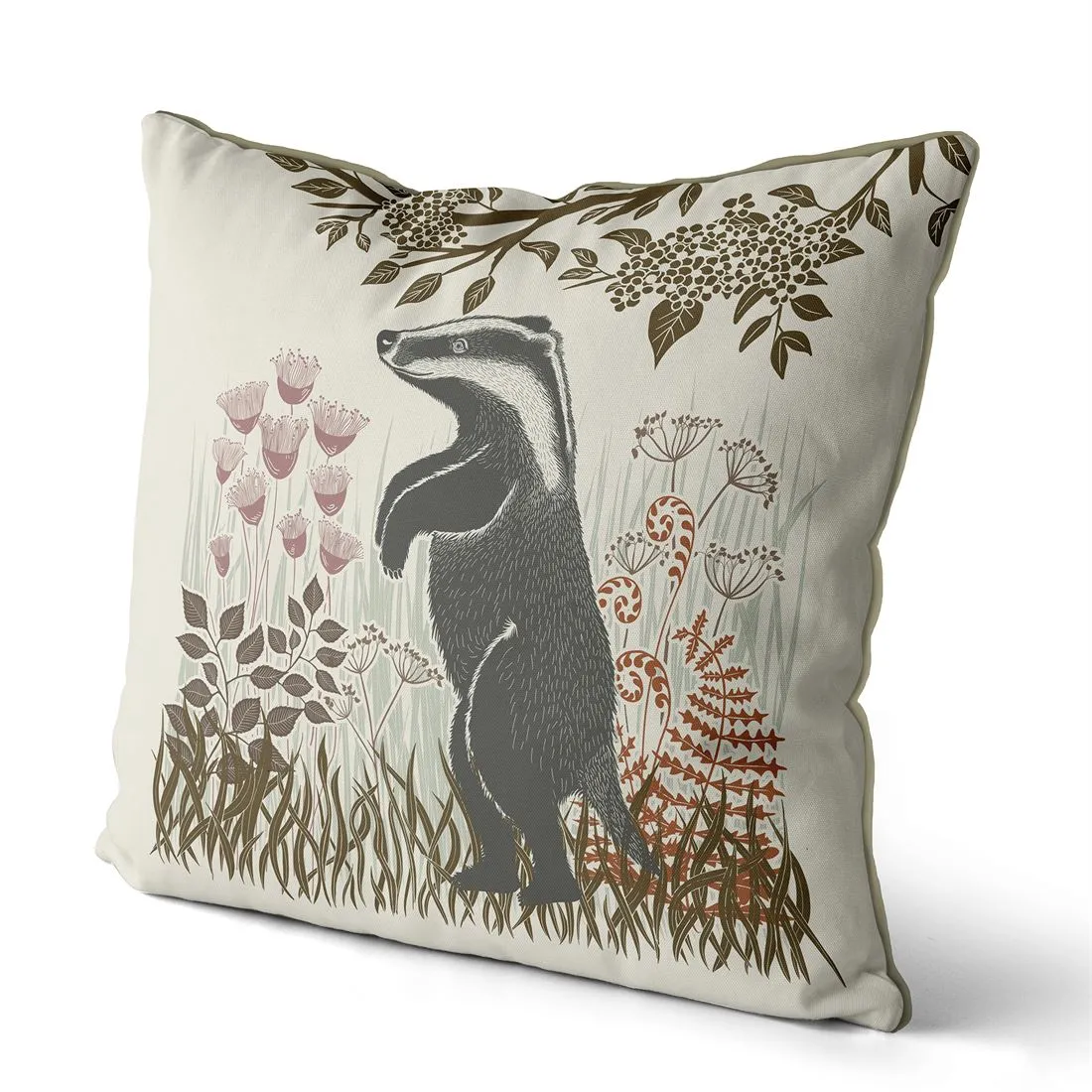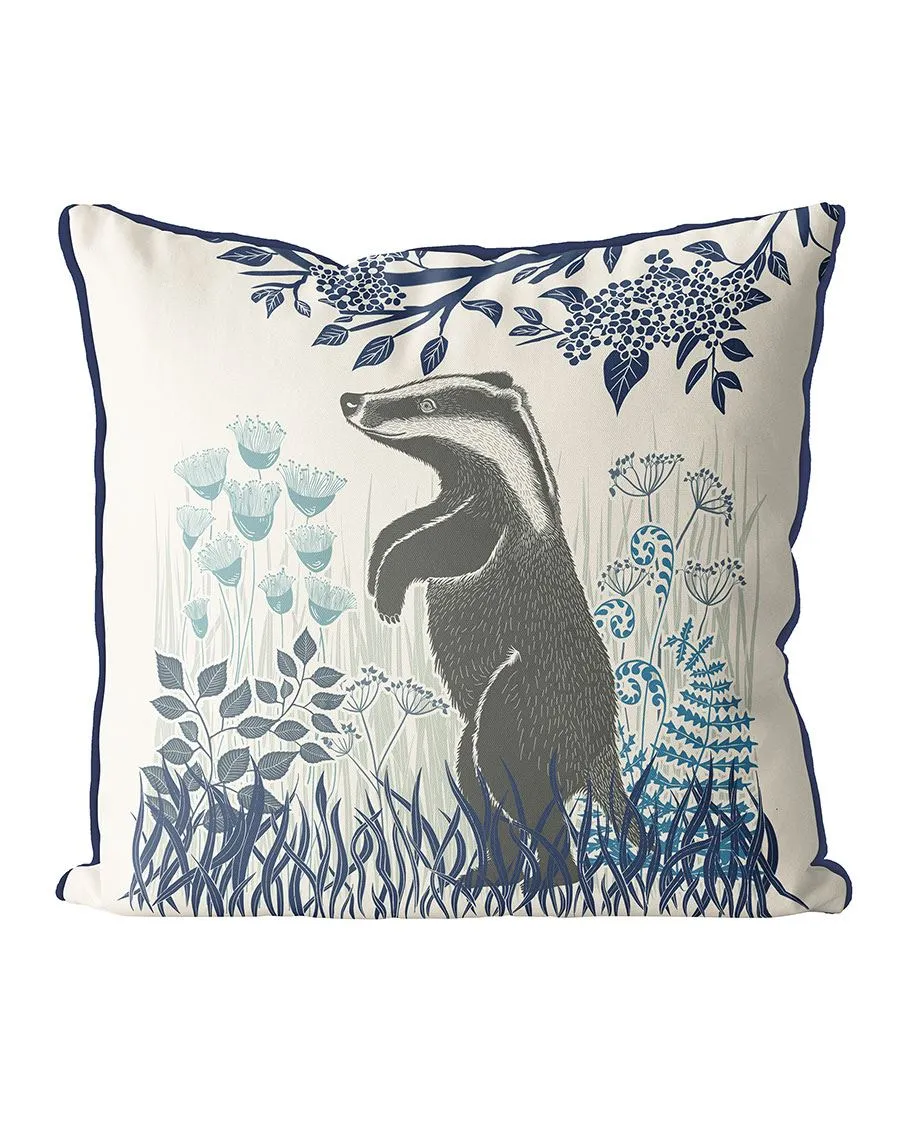 Bring the British countryside into your home with this lovely country style, woodland cushion. The striking hand drawn design on this covers features one of our lovely badgers, and is part of our Country Lane Collection that includes foxes, badgers, hares, owls, squirrels and hedgehogs. All of which are available in 3 different colours each.