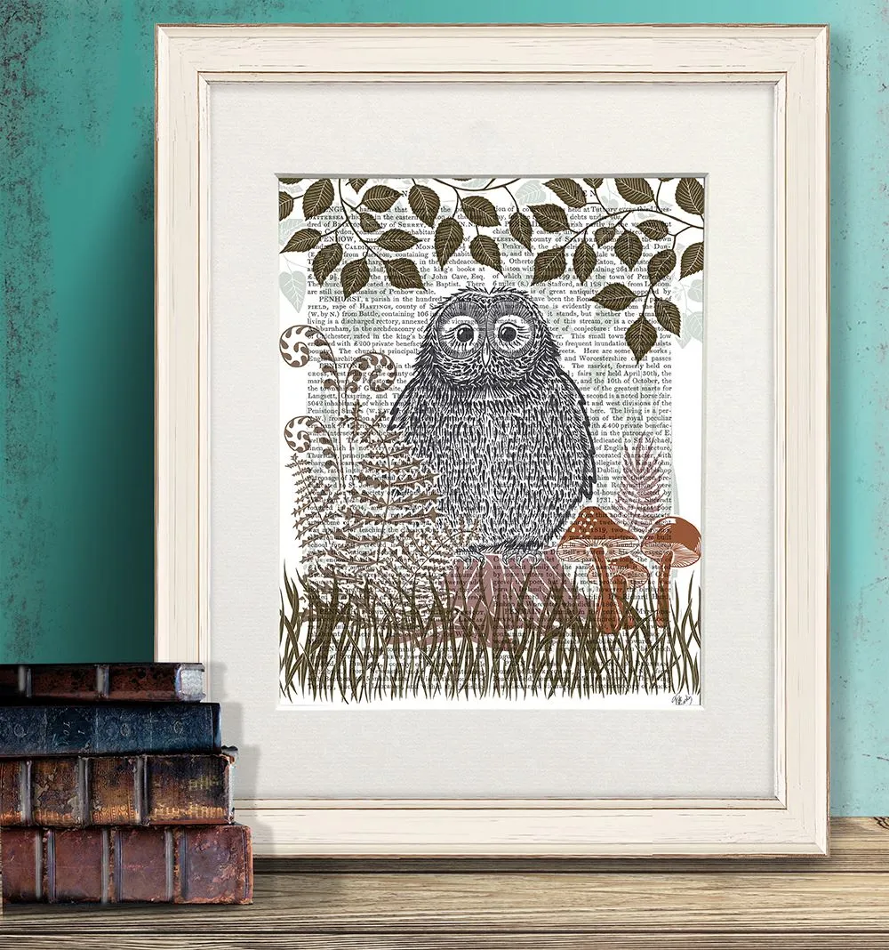 Home » Shop » Country Lane Owl 2, Earth, Book Print, Art Print, Wall Art