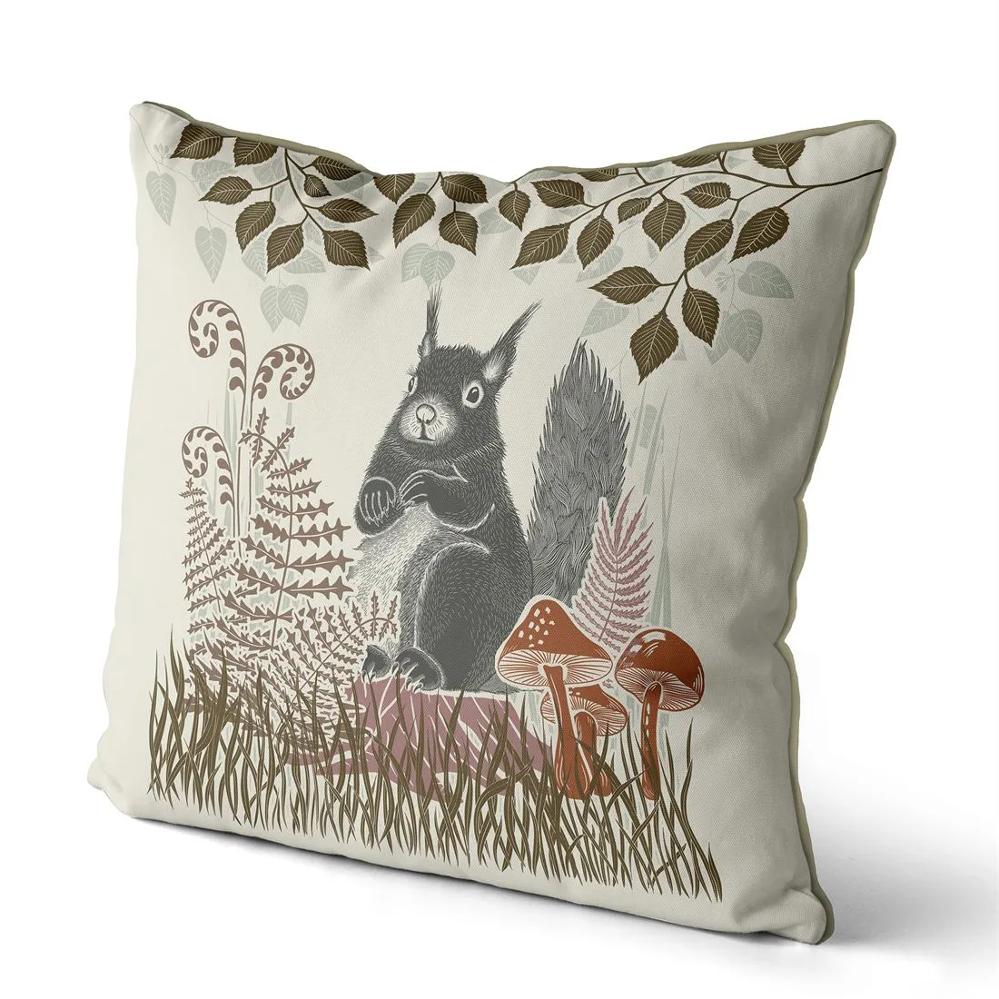 Bring the British countryside into your home with this lovely country style, woodland cushion. The striking hand drawn design on this covers features one of our lovely squirrels, and is part of our Country Lane Collection that includes foxes, badgers, hares, owls, squirrels and hedgehogs. All of which are available in 3 different colours each.