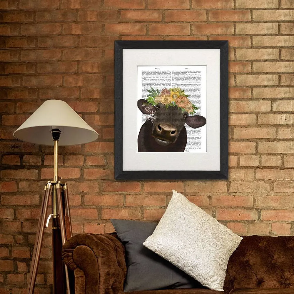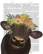Cow with Flower Crown 1, Book Print, Art Print, Wall Art