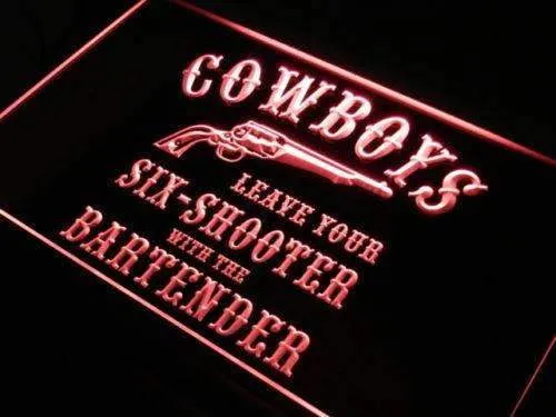 Cowboys Leave Guns Bar Western Decor LED Light Sign