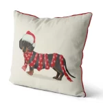 Home » Shop » Dachshund and Snowflake Scarf, Christmas Cushion / Throw Pillow