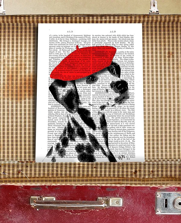 Dalmatian With Red Bow, Book Print, Dog Art Print, Wall Art