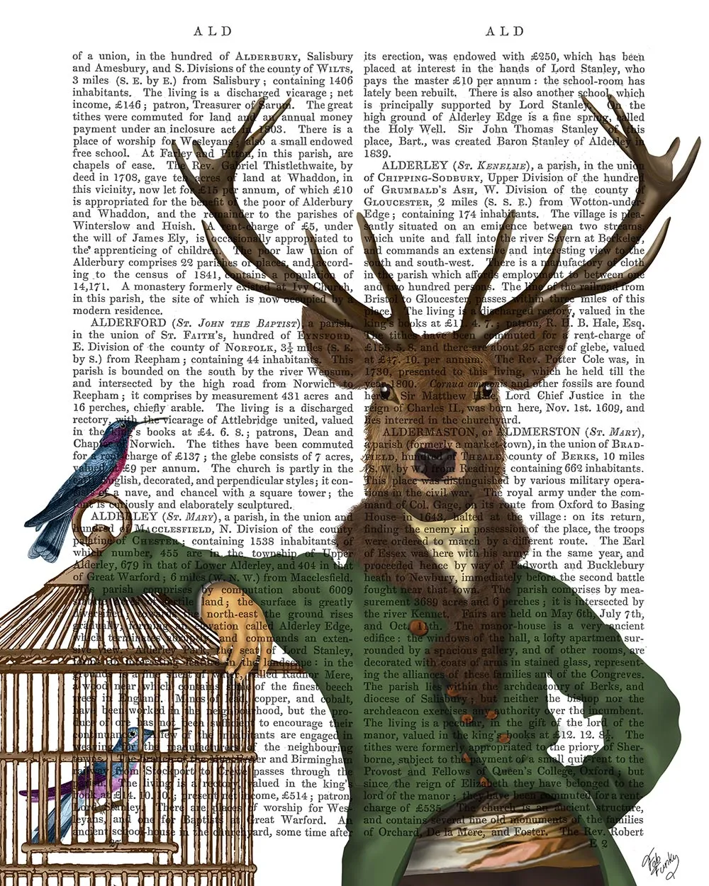 Deer and Bamboo Cage, Full, Book Print, Art Print, Wall Art