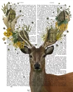 Deer and Beehives, Book Print, Art Print, Wall Art