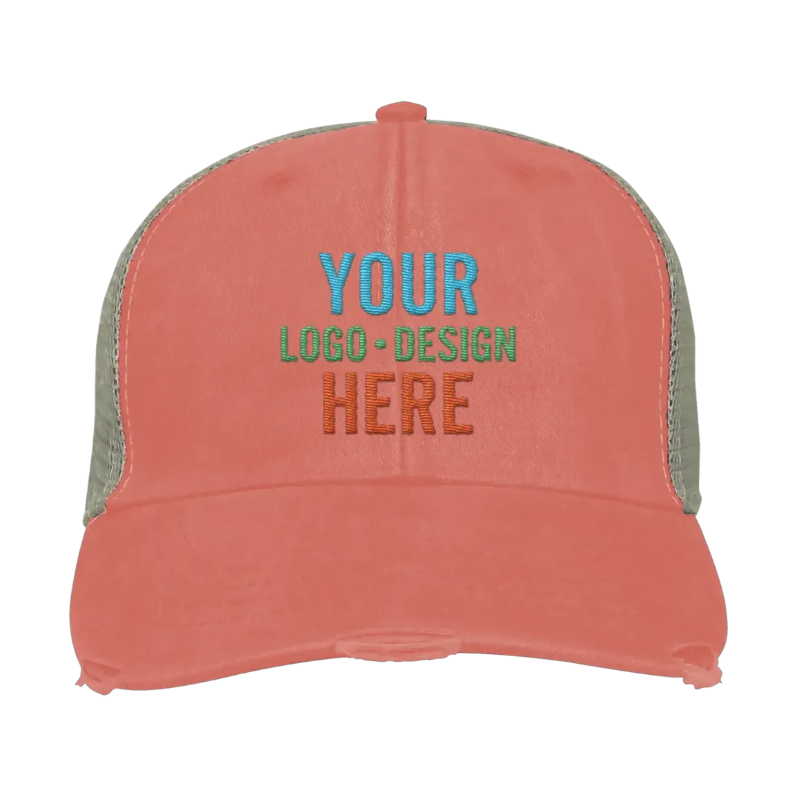 Home » Shop » Embroidered Adam’s Ollie Distressed Trucker Hat – Coral