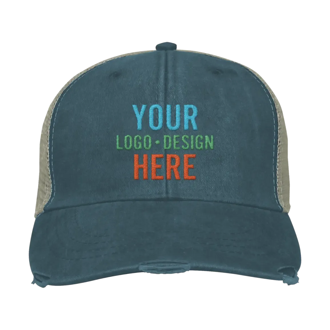 Embroidered Adam’s Ollie Distressed Trucker Hat – Navy