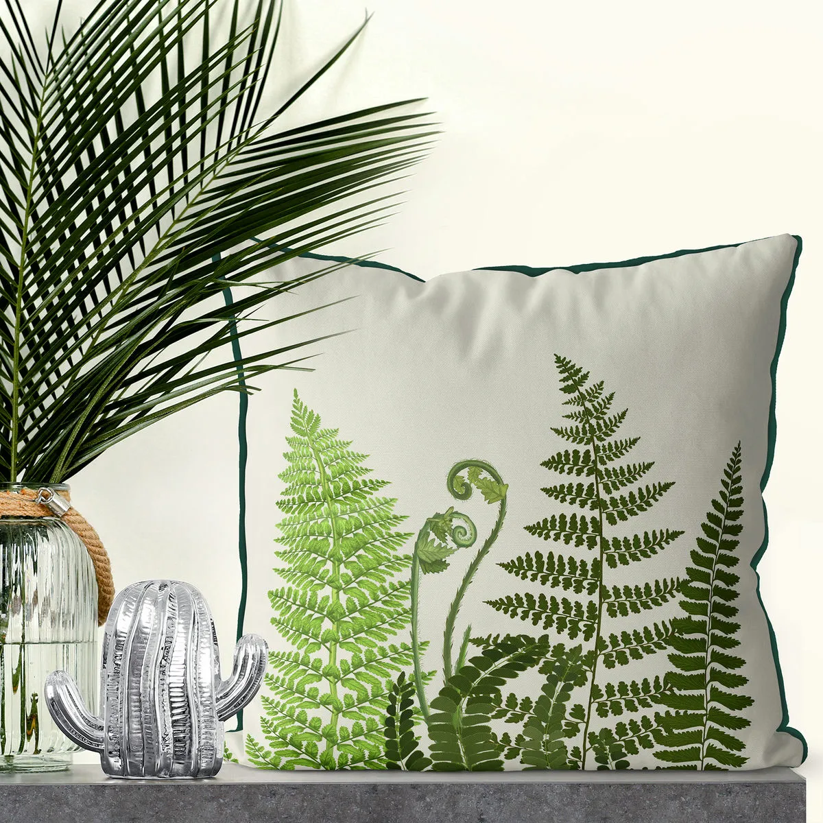 Fern Grove 2, Green leaf Cushion / Throw Pillow