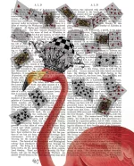 Flamingo and Cards, Book Print, Art Print, Wall Art