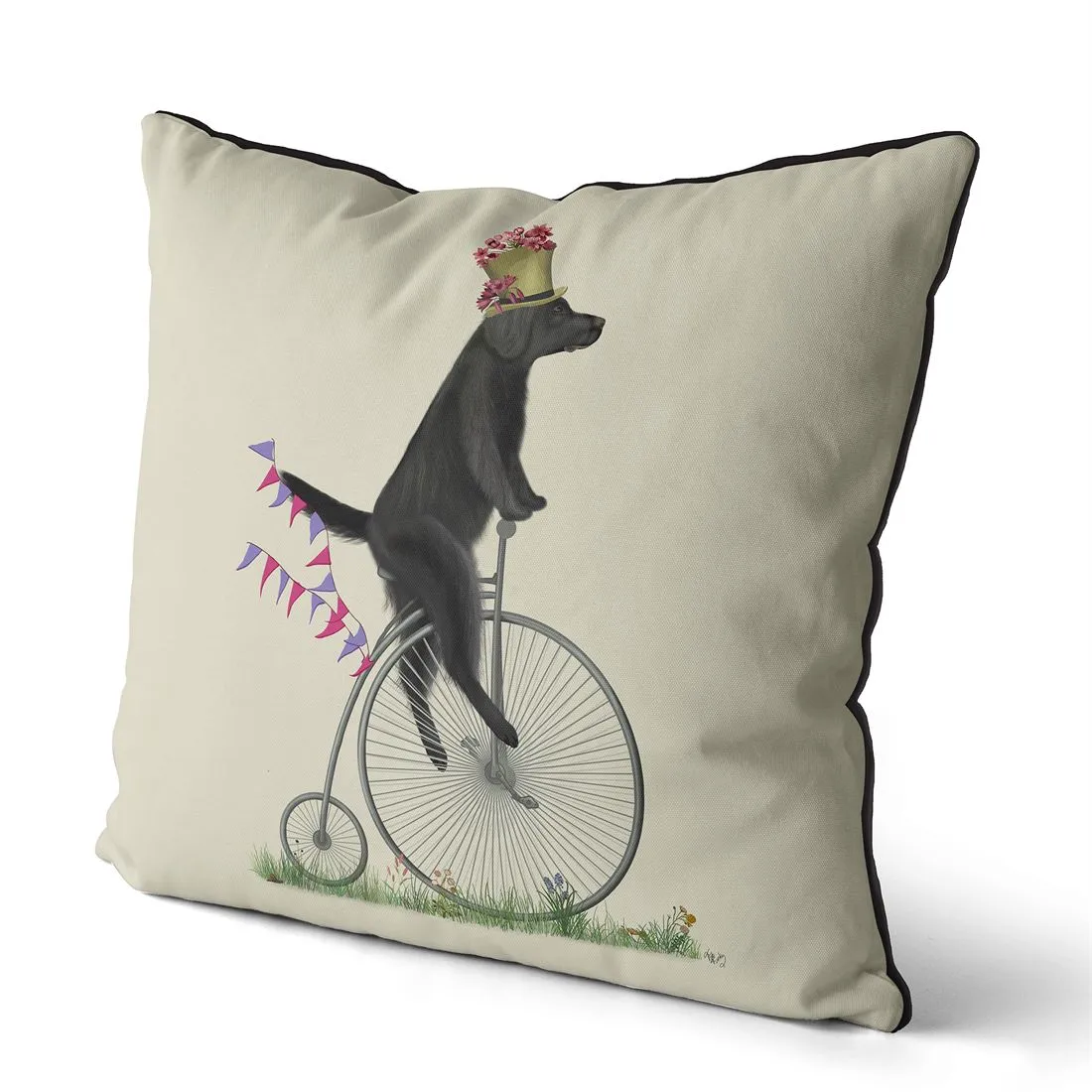 Flat Coated Retriever on Penny Farthing, Cushion / Throw Pillow