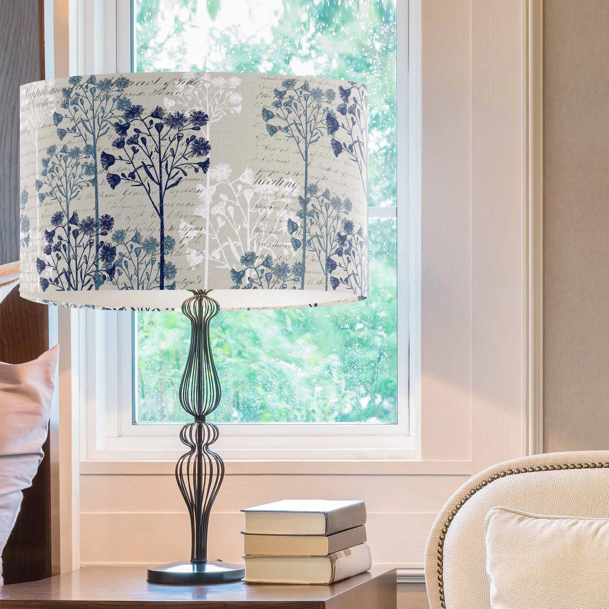 Floral Trees Midnight, Botanical Script Lamp shade, Drum, Pendant Lighting