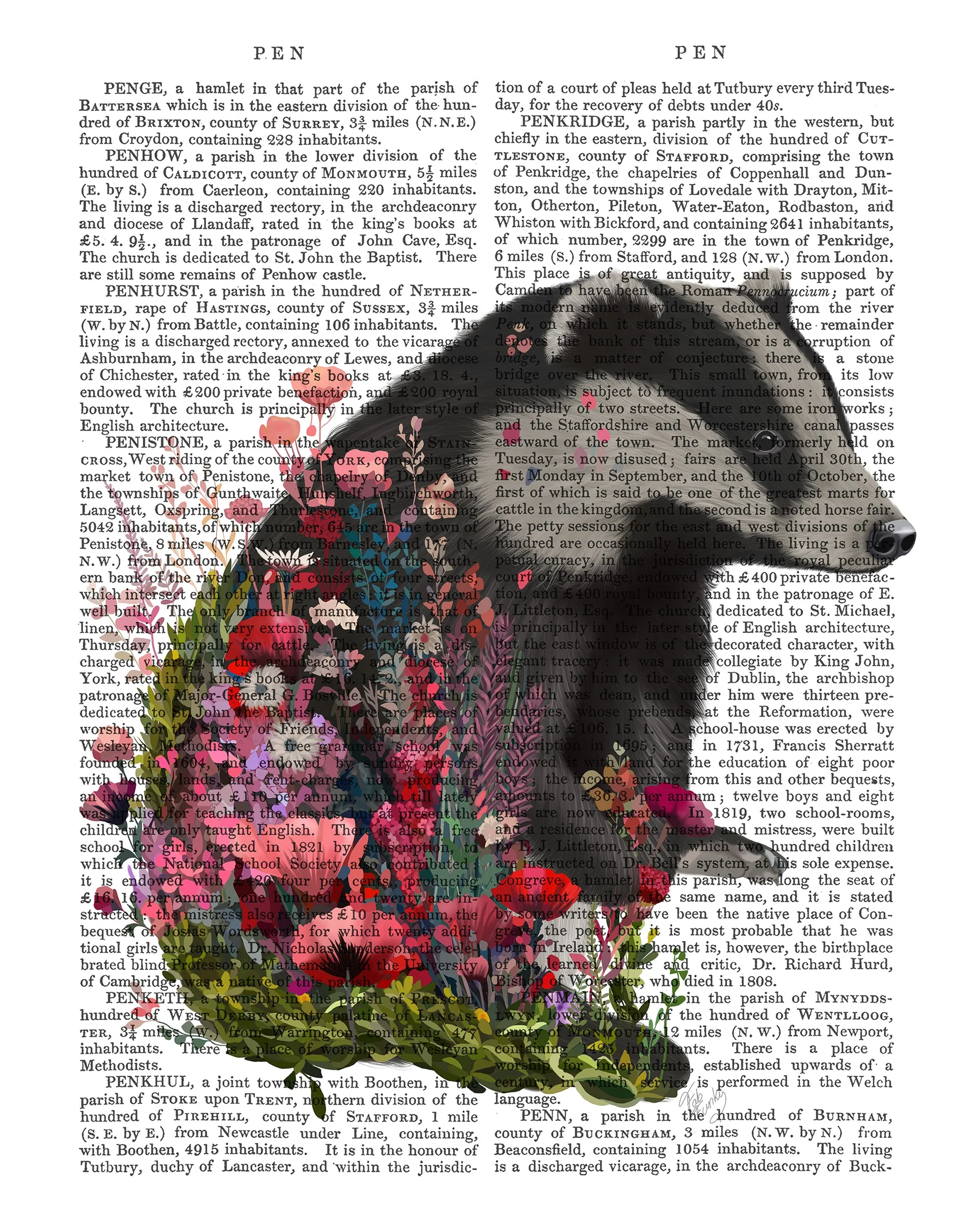 Floralessence Badger 1, Book Print, Art Print, Wall Art