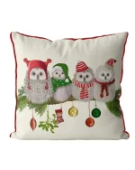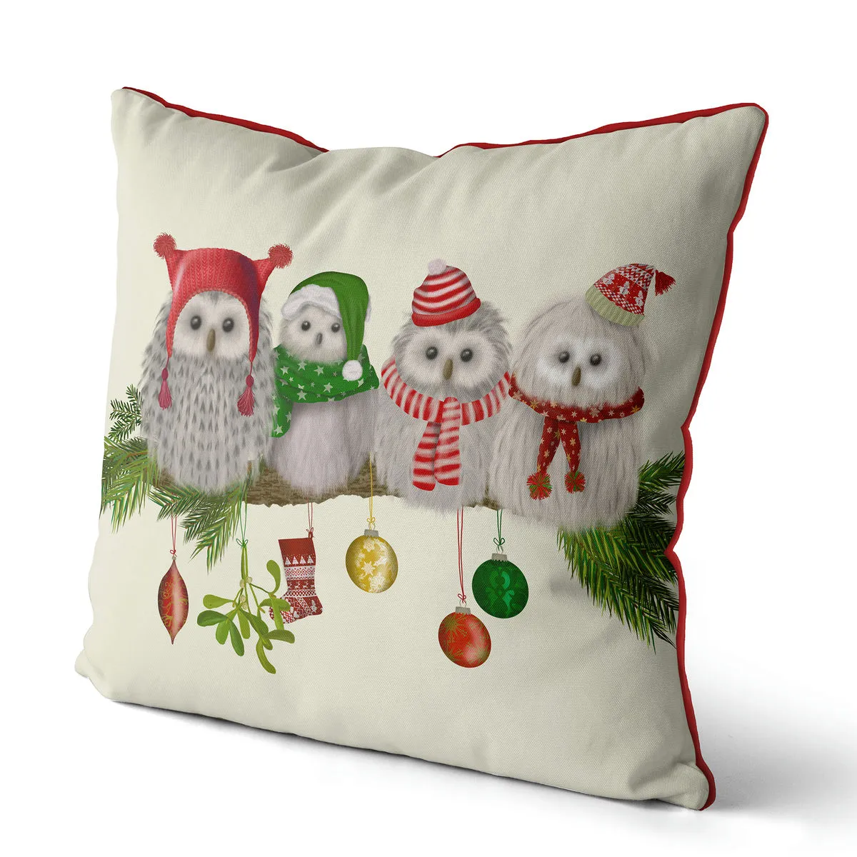 Fluffy Christmas Owls on Branch, Christmas Cushion / Throw Pillow