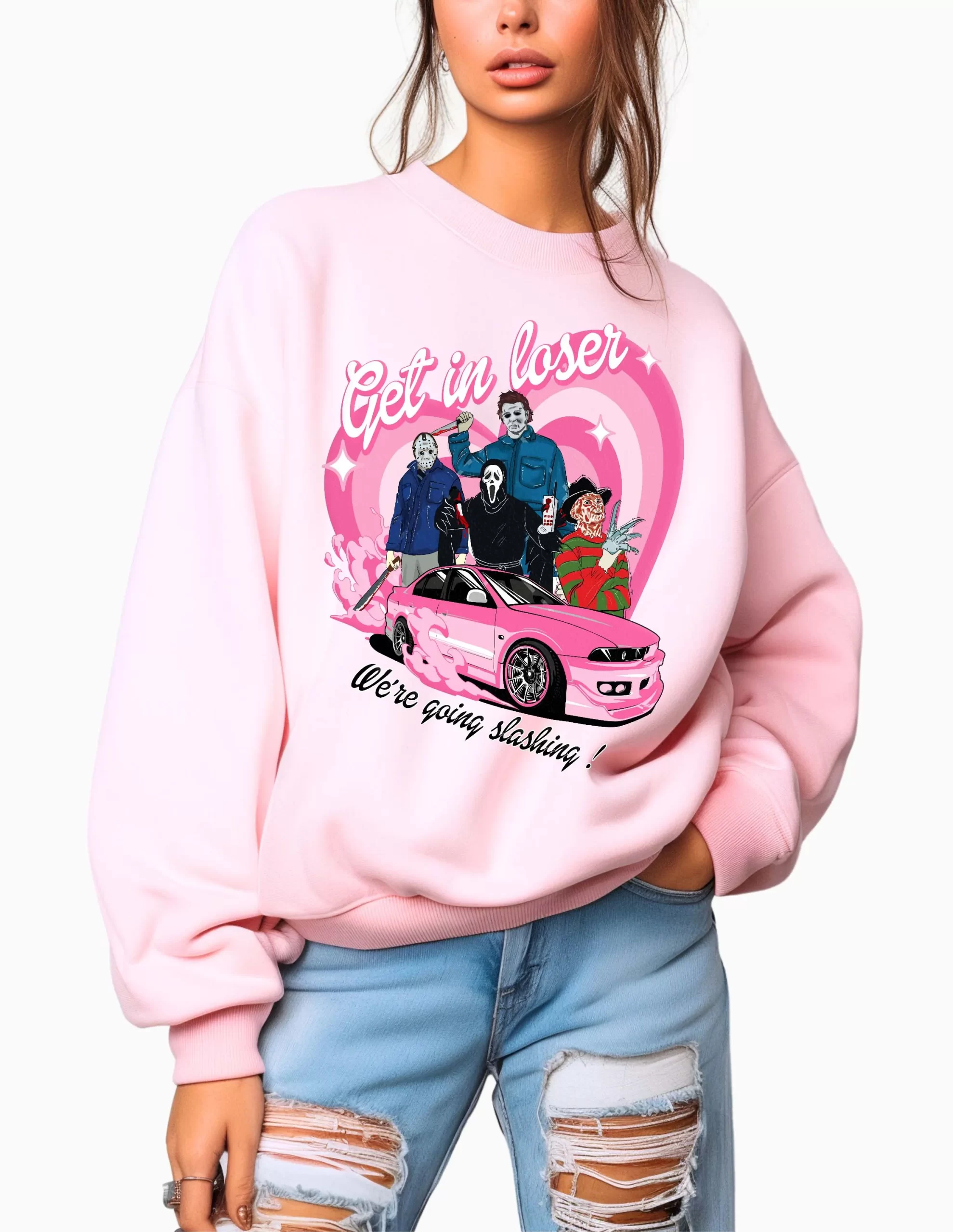 Home » Shop » Get In Loser We’re Going Slashing Crew Halloween Sweatshirt