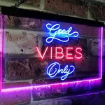 Illuminate your space with our sleek, modern Good Vibes Only LED Light Sign that combines vibrant, eye-catching colors with minimal heat emission. These high-quality LED light displays have become a popular choice for various settings, including bars, man caves, recording studios, home decor, and more. Known for their striking, neon-colored glow, our LED light displays bring a dynamic, energetic vibe to any room.