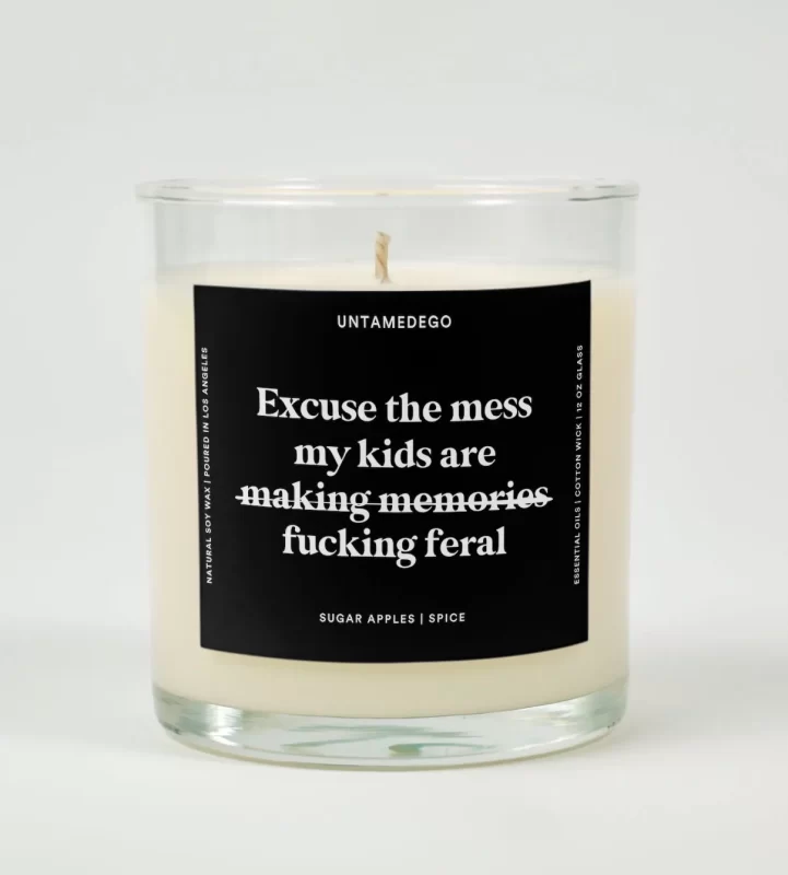Excuse The Mess My Kids Are Fucking Feral Glass Candle