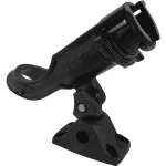 Features an ergonomic design and easy to find rapid release latch mechanism. The large, easy-grip lock-nut offers easy adjustment. 180x vertical adjustment range for a variety of rod tip height settings. Use with casting rods and spinning rods. Includes Combo Mount.